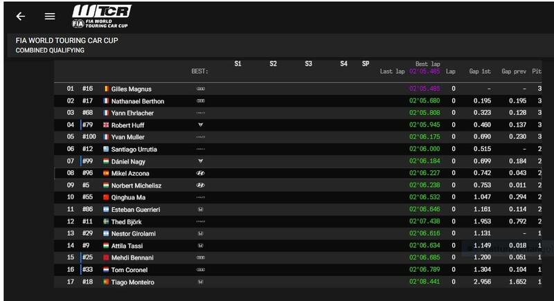 Eliminati in Q3 e chiudono lo schieramento Nestor Girolami, Attila Tassi, Mehdi Bennani lontano come in Ungheria dai livelli del Nurborgring, il suo compagno di squadra Tom Coronel, e Tiago Monteiro.