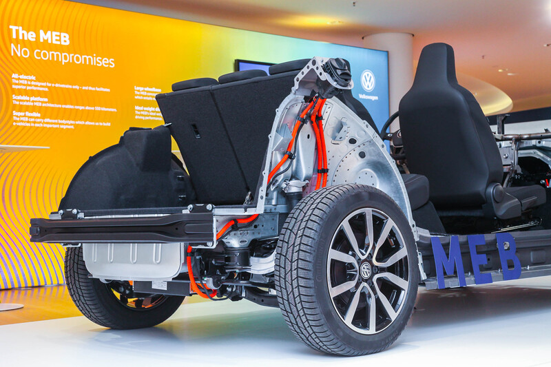 Dopo aver parlato di come sono le visioni Volkswagen in termini di nuova mobilità, andiamo al sodo scoprendo la piattaforma MEB, quella 100% tedesca ma “scrocca” quella che deve nelle intenzioni introdurre la macchina elettrica di massa in Europa, da parte di uno dei più grandi costruttori del mondo. Base per auto che saranno vestite di stile VW, ma anche Audi, Seat e Skoda. Quando ci viene presentata però, è “nuda” e si accosta a immagini in bianco e nero. Sono quelle del Maggiolino al suo debutto, perché l’obiettivo è ripercorrere quella strada. Le carte in regola pare averle, questo pianale leggero, compatto, con un passo ruota lungo (variabile) pochissimo sbalzo carrozzeria oltre gli assi e, infine, disposizione dei pesi ottimale.