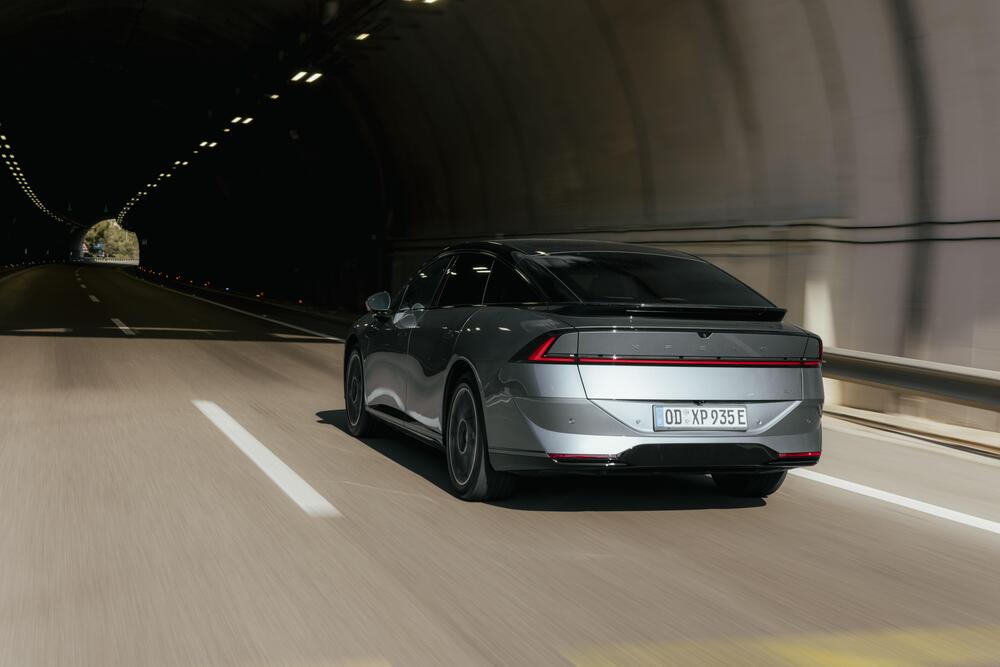 Le maniglie a scomparsa, le porte senza cornice e i gruppi ottici LED intelligenti sottolineano l’approccio high-tech del progetto, mentre il tetto panoramico con isolamento termico contribuisce al comfort nei lunghi viaggi. La configurazione fastback consente inoltre di offrire una capacità di carico particolarmente elevata, elemento sempre più richiesto nel mercato europeo delle berline elettriche di segmento D.