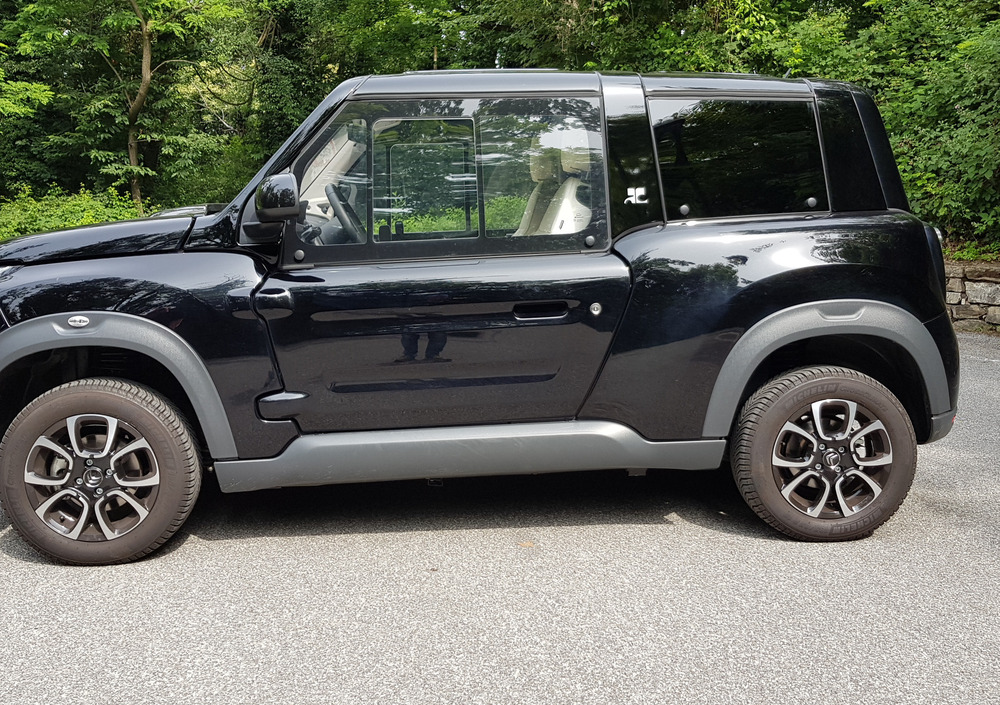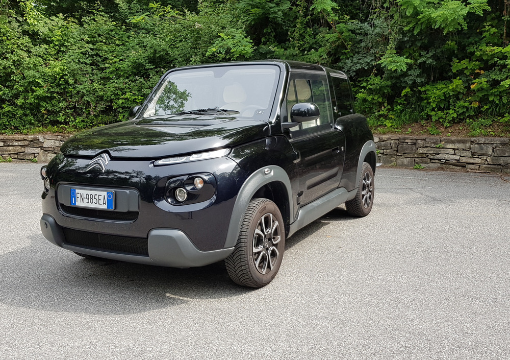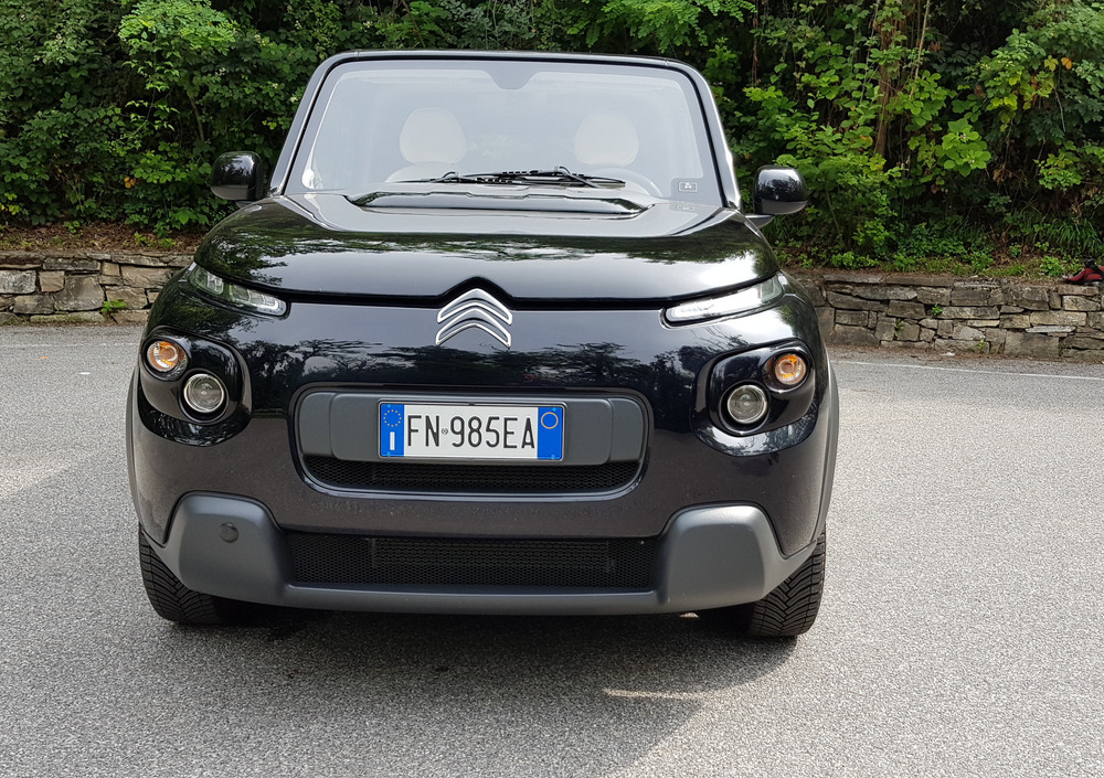 Fumettosa, bellissima, di chiara marca Citroen con quell’anteriore ripreso da altre vetture del brand, e quel posteriore e il design che richiamano i SUV. La particolarità sta nella carrozzeria in plastica, e negli interni lavabili direttamente con una passata di canna dell’acqua. Le dimensioni sono contenute, le porte sono tre, il che limita in un certo senso l’utilizzo da taxi di grande resort estivo che si potrebbe configurare già alla prima occhiata. Poco male, per una vettura che ha un bagagliaio che si apre in due parti, e che ha un pozzetto inferiore dove inserire il cavo di ricarica. I cerchi sono da 15 pollici, la particolarità sta nell’apertura delle portiere, che avviene tramite la chiave centralizzata o tramite il semplice appoggio del portachiavi sul parabrezza, grazie alla tecnologia RFD.