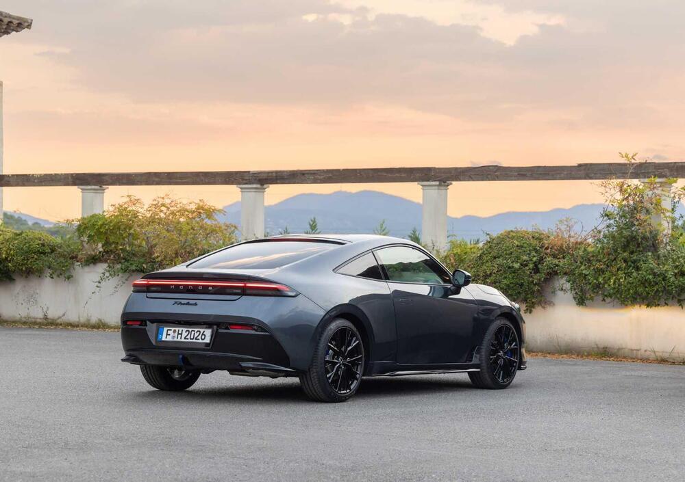 La vista laterale rivela un disegno estremamente pulito, con prese d’aria integrate dietro le ruote anteriori che migliorano la gestione dei flussi aerodinamici. Le maniglie a filo carrozzeria con sensore tattile e retroilluminazione contribuiscono alla raffinatezza complessiva, mentre gli specchietti fissati direttamente alle porte – come sulla Civic – riducono gli angoli ciechi e migliorano la visibilità. Il tetto presenta un caratteristico pannello “double bubble”, un omaggio alle sportive classiche, reso possibile dall’uso della tecnologia di saldatura laser “brazing”, che elimina la necessità delle guarnizioni tradizionali e conferisce un aspetto più premium e continuo alla superficie.