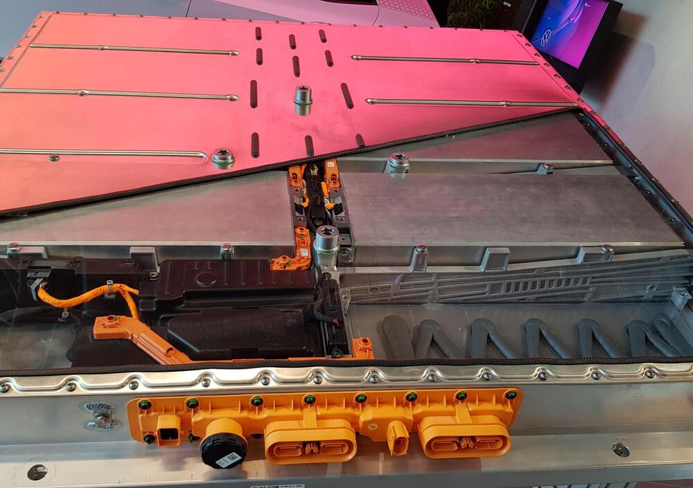 La massa maggiore, con un motore che sta in una borsa da palestra, qui è nella batteria posizionata sotto centralmente. Ben isolata e climatizzata, sicura, ma che pesa si sente eccome, nella dinamica. Soprattutto sulla versione più dotata (ID.3 Pro S 77 kWh). Abbiamo guidato la ID.3 58 kWh che già pesa 1750 Kg circa, quindi ben più di molte berline tipo VW Golf 8 a cui si potrebbe paragonare. Andando su quella da 77 kWh, per teorici 549 Km in WLTP, ci sono altri 100 kg circa, saturando lo spazio nell'involucro di alluminio, con dodici moduli agli ioni di litio (from Korea, ndr).