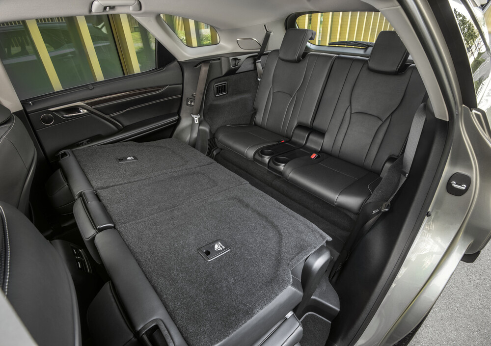 Sul comfort della Lexus RX L non si discute: alla guida si è letteralmente coccolati, il sedile ha una buona imbottitura e c’è la possibilità di riscaldarlo o ventilarlo a seconda della stagione. Non manca l’head-up che fornisce le informazioni del navigatore e tanta altra tecnologia in aiuto alla guida. Insomma, confermate le qualità e il comfort che caratterizzano la versione RX. Il motore elettrico permette di scattare silenziosamente e, soprattutto, di risparmiare tanto carburante. Godurioso il suono del V6 che interviene quando si vuole più potenze e a velocità extra urbane. Per questa prova, però, ci siamo concentrati sullo spazio disponibile per i passeggeri: quindi, una volta regolato il sedile del pilota, abbiamo aperto la porta posteriore e ci siamo seduti per vedere come si sta. Ipotizzando di non avere nessuno dietro, si ha il massimo dello spazio: le gambe sono ben distanziata dal sedile davanti e, anche chi è alto più di un metro e ottanta può macinare km in tutto relax. Aprendo la terza fila, invece, bisogna stringersi un po’: per entrare dietro si può ribaltare il sedile, ma una volta entrati ci si accorge che i due posti aggiuntivi sono dedicati ai piccoli componenti della famiglia. Inoltre, per far stare seduto un adulto, bisogna sacrificare anche dello spazio per la seconda fila e, con l’obbligo di farla scorrere in avanti, anche i tre passeggeri di mezzo si trovano un po’ impiccati con le gambe.
