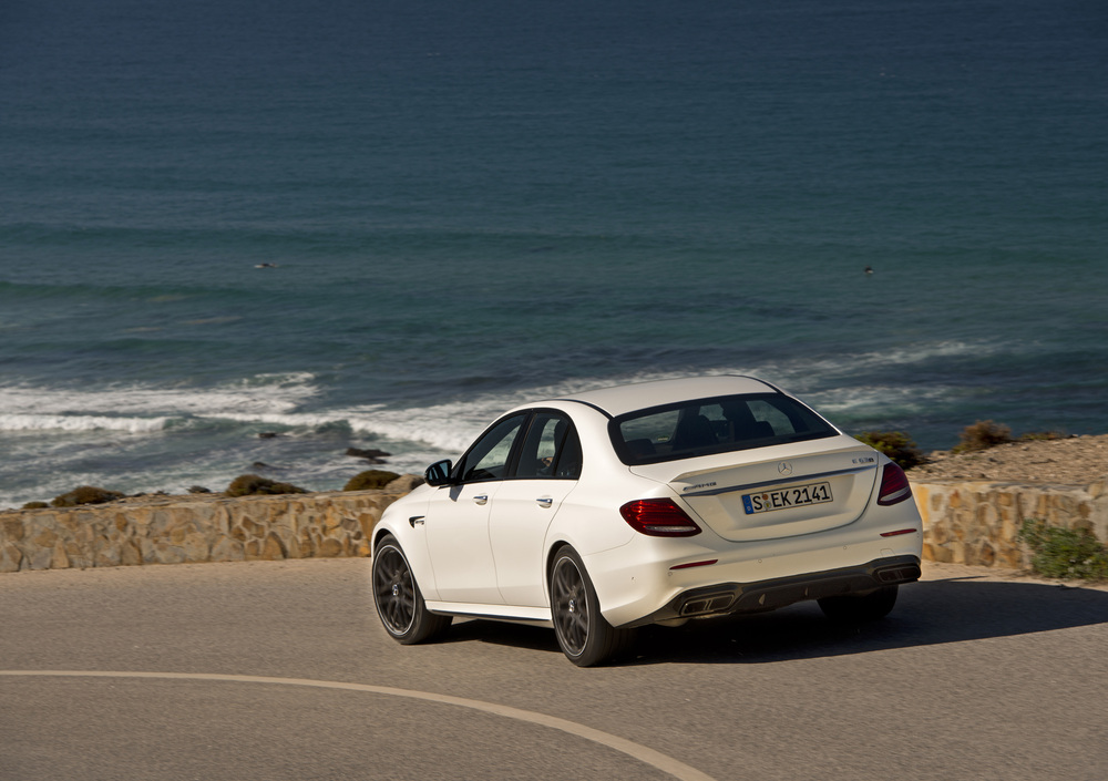 Ma andiamo con ordine e partiamo dallo scoprire quali sono le qualità tecniche partendo proprio dal nuovo motore 4 litri V8 biturbo con due livelli di coppia: 750 (2.250 giri) per la "standard" e 850 Nm (a 2.500 giri) per la S. Valori eccezionali che assicurano alla Classe E la capacità di passare da 0 a 100 km/h in soli 3,4 secondi (3,5 la standard) con un picco velocistico di 250 Km/h autolimitati ma sbloccabili, attraverso l'AMG Driver's package, alla mostruosa velocità di 300 km/h, anch'essi frenati dall'elettronica: in Mercedes, in via non del tutto ufficiale, ci hanno detto che se non fosse per la centralina la vettura fermerebbe naturalmente la sua ascesa a 335 km/h. Prestazioni notevoli che sono state ottenute senza mettere da parte l'attenzione per il contenimento di consumi ed emissioni: grazie alla disattivazione di 4 degli 8 cilindri nelle fasi di basso carico, il V8 tedesco consuma mediamente 8,9 l/100km con un valore di emissione di CO2 pari a 203 g/km.