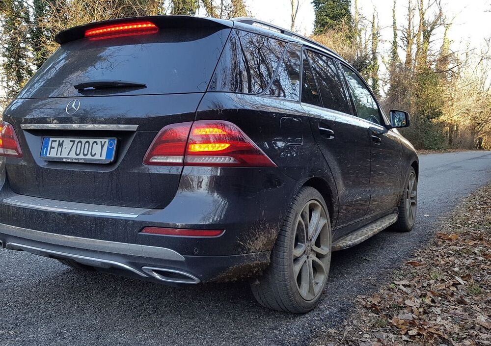 Tipicità da SUV, dicevamo, con inserti preziosi che fanno comprendere come GLE possa dare mostra di sè anche quando l'asfalto rimane alle spalle. Le misure parlano chiaro: quattro metri e 82 di altezza, uno e 94 di larghezza, e un'altezza di uno e 80. Una bella presenza, quindi, resa massiccia da un frontale dove l'emblema Mercedes è enorme, e dove i fari full led adattivi si accendono in via del tutto scenografica. Sulle fiancate le nervature non mancano, così come i cerchi da 21 che magari non suggeriscono un fuoristrada estremo, ma che sono perfettamente concepiti per dare a GLE le giuste proporzioni. La spalla è comunque adeguata, ed è elevata l'altezza da terra, con angoli di attacco e di uscita rispettivamente di 26 gradi e altezza di guado di 50 centimetri, che diventano rispettivamente 30 gradi e 60 centimetri con il pacchetto Offroad+. Niente male per questo mostro costruito con i soliti crismi Mercedes, che offre qualità anche nelle soluzioni posteriori e nel bagagliaio, apribile e richiudibile in via del tutto elettrica. I doppi terminali portano simmetria ma sono finti. Poco male, è un vezzo stilistico di molte case.