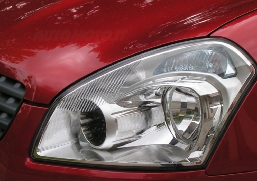 La vettura giapponese infatti si presenta con una personalità spiccata, ma senza ricorrere a soluzioni troppo vistose. Anche i richiami al suggestivo fratello maggiore – il Murano – sono ridotti al minimo, limitandosi di fatto al particolare andamento del montante posteriore e del terzo finestrino laterale. Il frontale è dominato da gruppi ottici trapezoidali di generose dimensioni e dalla classica calandra della Casa (nera anziché cromata, come nel Murano). Infine, il fascione inferiore ospita prese d’aria piuttosto generose e si collega ai passaruota e ai fascioni laterali e posteriori, creando di fatto un anello di colore contrastante rispetto alla carrozzeria che circonda il Qashqai conferendogli l’immagine tipica di un off road, ma senza esagerare, dal momento che il design e le dimensioni di queste appendici sono piuttosto