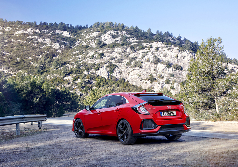 La Honda Civic di decima generazione, almeno in questa variante hatchback pensata per tutti i mercati del mondo, continua ad essere costruita in Gran Bretagna, nello stabilimento di Swindon. La piattaforma, è stata completamente riprogettata per aumentare rigidità torsionale e contenere allo stesso tempo il peso, ma la vera novità che porta con sé questa serie sono i nuovi motori VTEC turbo benzina, particolarmente pepati nonostante la cubatura. Si parte con un 1.0 tre cilindri da 129 CV, per passare al quattro cilindri 1.5 da 182 CV. Oltre al cambio manuale a sei marce, anche in questo caso completamente nuovo, si può scegliere un automatico CVT. Il diesel, che poi sarà sempre il noto 1.6 Honda i-CDTI portato a quota 130 CV, purtroppo arriverà soltanto a partire dall’inizio del 2018. Le versioni più ricche possono contare poi su sospensioni adattive, mentre il pacchetto di sistemi di assistenza alla guida, che comprende tra le altre cose cruise control attivo con Lane Assist e frenata automatica di emergenza, è di serie su tutte le versioni.