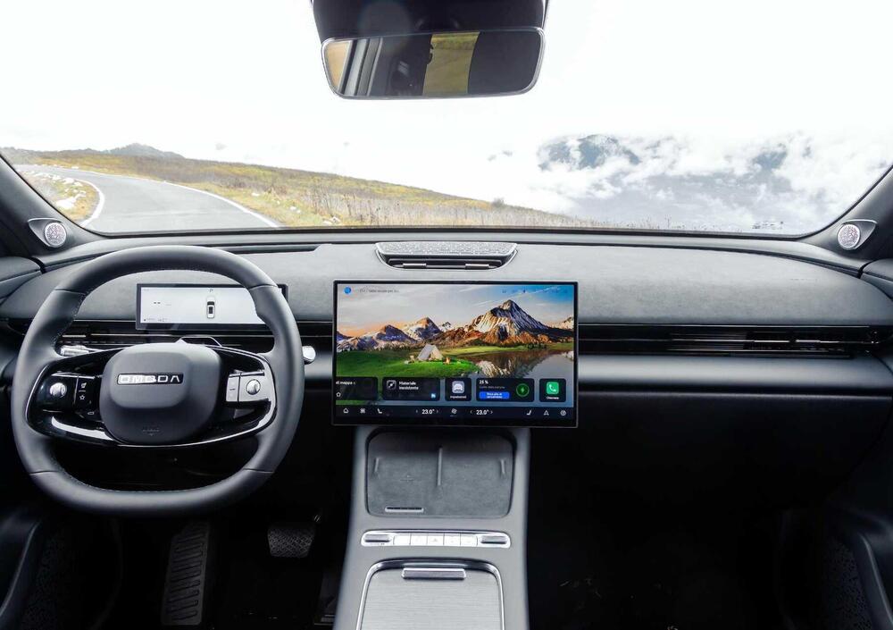 Qualche nota stonata, però, non manca. Il cassetto portaoggetti è sacrificato a favore del display trasferibile al passeggero (optional). Documenti e oggetti finiscono inevitabilmente nel bracciolo centrale. Le prese di ricarica non sono comodissime, la gestione delle funzioni è quasi interamente delegata al display, il che distrae dalla guida, e i tasti fisici presenti si limitano all'essenziale: sbrinamento, aria condizionata e frecce di emergenza. Il volante a due razze ha qualche tasto criptico, e le luci di cortesia ricordano un po' troppo da vicino certe soluzioni Mercedes.