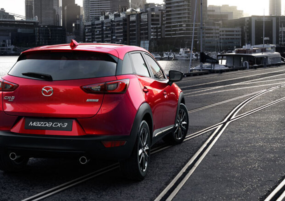 CX-3 ***. Listino di 27.270 euro per la 4x4 Mazda diesel al top di gamma. Non pochissimo, ma i contenuti e lo stile ci sono. I consumi del 1.5 a gasolio vedono: 4,7 l/100 Km nel ciclo combinato, 4,6 in extra urbano e 4,9 in quello urbano: molto onesti, non però migliori della rivale Suzuki, nonostante la cubatura. La garanzia base prevede copertura triennnale o sino a centomila km. L’estensione Mazda Best5, attivabile entro tredici mesi dall’immatricolazione, aggiunge copertura in tutta Europa fino a ventiquattro mesi oltre la normale garanzia (totale 200.000 chilometri). I pacchetti Service Plus includono interventi di manutenzione programmata, da due sino a cinque anni, con un tagliando annuo. Sul fronte dell’usato, la ancor giovane Mazda CX-3 si sta difendendo molto bene, grazie all’apprezzamento generale sin dal debutto. Invero non ancora popolarissima, mantiene quotazioni elevate non avendo ancora più di un anno. Sarà l’eventuale cambio o mantenimento di questo trend stilistico a influenzarne l’appeal nel lungo termine, mentre per l’aspetto qualitativo genericamente, come tutte le Mazda, esprime grande affidabilità e manutenzioni previste nella media (online sul canale ufficiale della Casa ci sono buone indicazioni, anche video, per le piccole verifiche che possano capitare). I sistemi elettronici, propri, vincolano per eventuali attività straordinarie come le ricodifiche delle ecu alla sola rete Mazda.