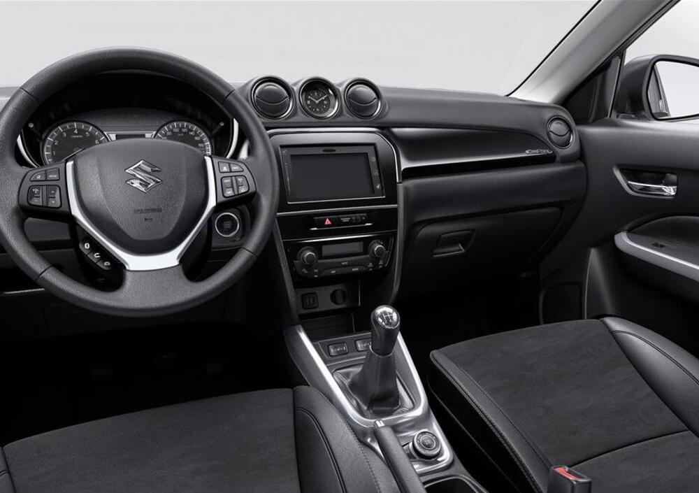VITARA ****. In allestimento V-top la Vitara include tanto, anche se non lo propone vistosamente come la rivale e non fa percepire troppo lusso. Può sembrar meno al passo dei tempi, per certe soluzioni di cruscotto e comandi, ma ci sono: clima automatico, Keyless, impianto Hifi con touchscreen da 7’’ (Navigatore 3D, Mirror Link, USB, Bluetooth e comandi al volante) Cruise control adattivo, volante in pelle, sedili riscaldati, bracciolo centrale, presa elettrica nel bagagliaio, protezioni laterali e inferiori, retrovisori elettrici, tergi automatici, controllo di stabilità, RBS, assistenza frenata. Non ci si può certo lamentare, anzi, trovando qualcosa in più. Tra i molti accessori opzionali a disposizione per vivacizzare lo stile, ci sono le bocchette centrali in tinta (39,86 euro), come anche la maschera cruscotto e un bel tetto panoramico. Parecchi altri dettagli sono personalizzabili, nei profili estetici e negli interni, anche se l’impronta base dominante è quella razionale, delle forme scelte, non caratteristica quando su CX-3.