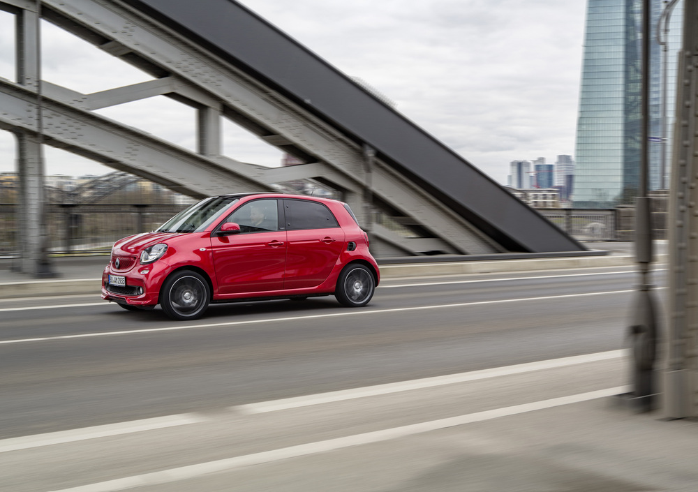 Il debutto della smart di generazione 453 ha portato in dote tante novità per la gamma della city car tedesca: la prima è il ritorno della Forfour a fianco della Fortwo, questa volta nel contesto di un progetto in cui è davvero una smart con due porte in più, mentre la seconda riguarda la partnership con la Renault che ha permesso sinergie tecniche molto interessanti: tra queste l'arrivo del motore turbo che nella sua versione Brabus vanta la bellezza di 121 cv/litro.