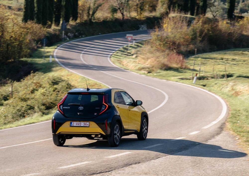 Ma la vera sorpresa arriva fuori dalla città. I 116 cavalli si sentono tutti. L'allungo c'è, i sorpassi sono sicuri. La Aygo X Hybrid pesa 140 kg in più rispetto alla versione termica, e per gestire questo aumento Toyota ha riadattato le sospensioni, affinato il volante e portato i mozzi ruota da quattro a cinque bulloni, migliorando la gestione delle frenate e della potenza.