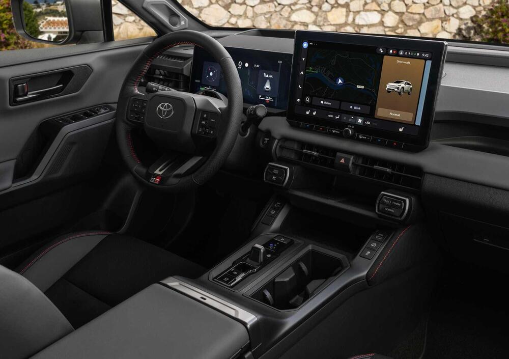 Il digital cockpit è dominato da due schermi principali: un display da 12,3 pollici per la strumentazione digitale, posizionato in modo da essere visibile attraverso il volante, e un touchscreen centrale da 12,9 pollici per il sistema multimediale. Entrambi girano sulla nuova piattaforma software Arene, sviluppata internamente da Toyota e presentata qui per la prima volta.