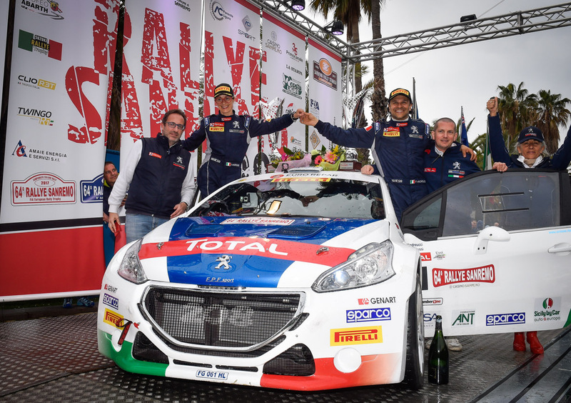 64° RALLYE SANREMO FINALE ASSOLUTA: 1. Andreucci-Andreussi (Peugeot 208 T16) in 1:53'35.3; 2. Paddon-Marshall (Hyundai I20) a 38.6; 3. Scandola-D'Amore (Skoda Fabia) a 1'16.5; 4. Perico-Turati (Skoda Fabia) a 3'34.4; 5. Chentre-Florean (Hyundai I20) a 5'33.3; 6. Ferrarotti-Caputo (Ford Fiesta) a 8'33.6; 7. Andolfi-Menchini (Abarth 124 Rally) a 9'22.3; 8. Gilardoni-Bonato (Renault Clio) a 12'26.3; 9. Gache-Belhacene (Abarth 124 Rally) a 12'48.3; 10. Pollara-Princiotto (Peugeot 208 Vti) a 13'44.5.