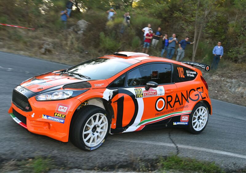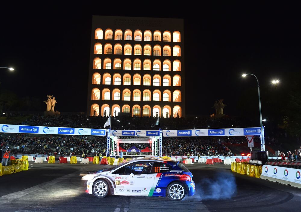 Rally Roma Capitale. 1a Tappa. Classifica Assoluta. 1. CAMPEDELLI-OMETTO (FORD FIESTA R5) in 41'27.6; 2. SCANDOLA-D'AMORE (SKODA FABIA) a 0.3; 3. ANDREUCCI-ANDREUSSI (PEUGEOT 208 T16) a 5.2; 4. ROVANPERA-PIETILAINEN (PEUGEOT 208 T16) a 59.9; 5. RUSCE-FARNOCCHIA (FORD FIESTA R5) a 1'28.4; 6. DE TOMMASO-ROCCA (PEUGEOT 208) a 4'09.6; 7. POLLARA-PRINCIOTTO (PEUGEOT 208) a 4'11.9; 8. GILARDONI-BONATO (RENAULT CLIO) a 4'55.2; 9. CIUFFI-GONELLA (PEUGEOT 208) a 4'55.9; 10. MAZZOCCHI-GALLOTTI (PEUGEOT 208) a 5'07.0