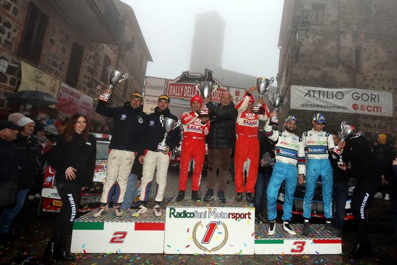E lì si rovescia il Mondo. Andreucci chiama Rudy Briani all’attenzione, e il navigatore diventa uno spartito che il solista interpreta alla sua maniera, piuttosto irriverente. Andreucci, Skoda Fabia Rally2 H-Sport/MRF, restituisce a Costenaro il ritardo più tre secondi di interessi, e va a vincere il Rally. Costenaro è secondo, il terzo posto è faccenda “tirata” tra Tommaso Ciuffi e Luca Panzani, con destino favorevole al fiorentino figlio d’arte. Alla domanda su come è andata, Andreucci risponde chiaro. “Gara bella, bella soddisfazione. Abbiamo sofferto all’inizio per “pulire” le strade. Non semplice, e abbiamo pagato. Poi la nebbia, e infine la pioggia, d’accordo, siamo riusciti a prendere un bel ritmo e a ribaltare la situazione in nostro favore. Vuol dire che siamo avanti, sia con la macchina che con le gomme, ma comunque sia chiaro: Costenaro è stato bravo, è andato molto forte. Complimenti a lui!”