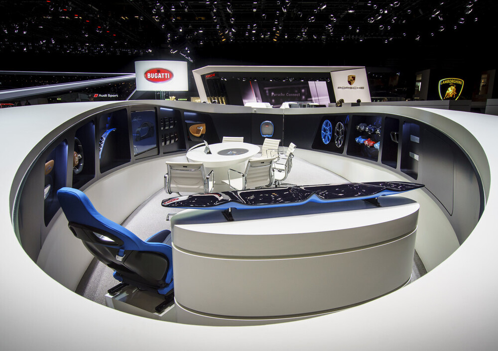 I giurati hanno particolarmente apprezzato l'architettura dello spazio espositivo di Bugatti, in cui la sola star era la Bugatti Chiron.