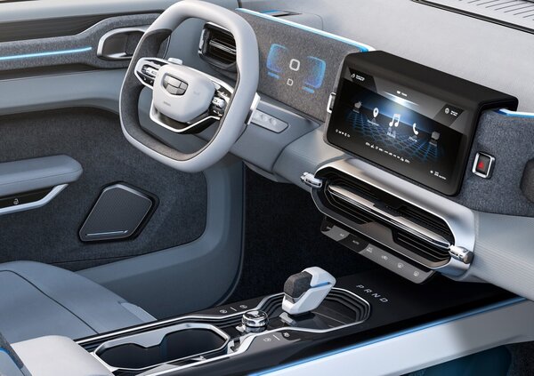 Il Geely Icon ha un look minimalista che anticipa le intenzioni della Casa: esteticamente le linee sono geometriche e ben definite. Design futuristico e stile offroad, con i fari scavati nella carrozzeria e tutta la parte bassa in nero.