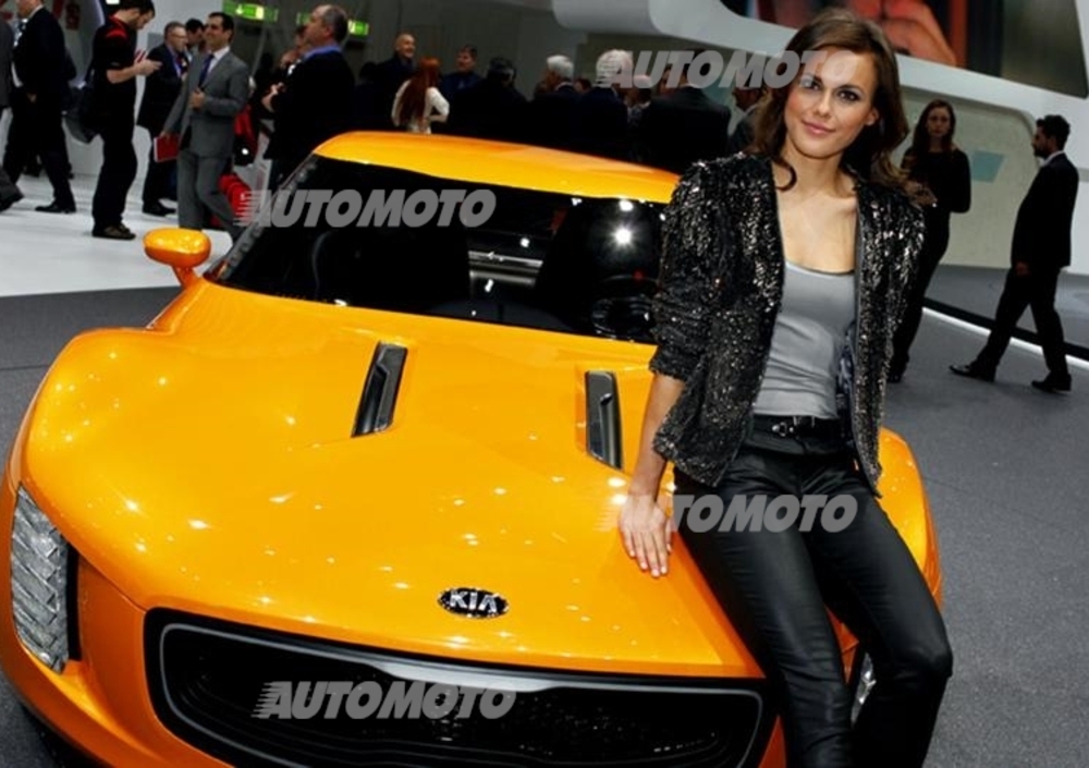 Il terzo gradino del podio è stato occupato dalla ragazza seduta sul cofano della Kia GT4 Stinger concept.