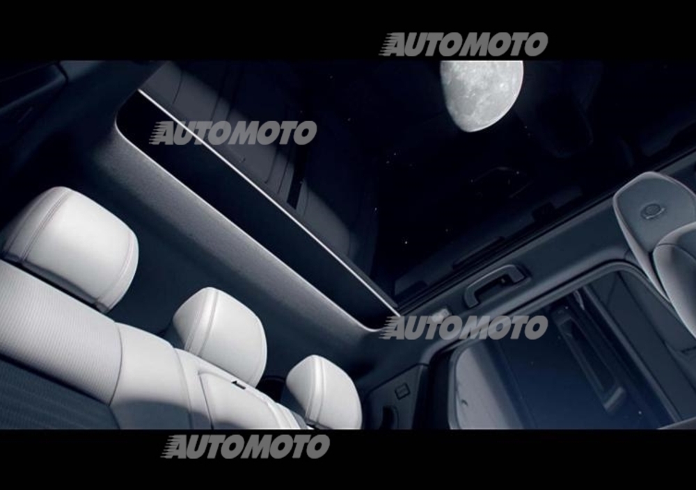 Inoltre è possibile vedere un tetto panoramico davvero esteso, oltre alla zona centrale della plancia, dove, in posizione rialzata, trova posto il grande display del sistema multimediale. In un’immagine è possibile scorgere, anche se rimangono volutamente non a fuoco, la strumentazione, che sembra essere composta da due quadranti separati da un display digitale, e parte del volante a tre razze.
