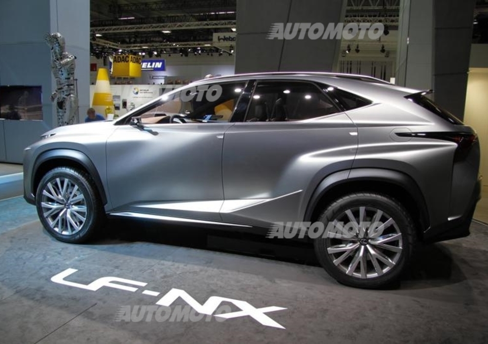 Il prototipo Lexus LF-NX concept, equipaggiato con una nuova variante del sistema Lexus Hybrid Drive, vanta all'esterno delle linee forti e tese, con una calandra a clessidra volta a dominare la sezione frontale e ai cui lati si stagliano dei gruppi ottici minimalistici.