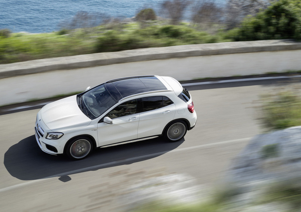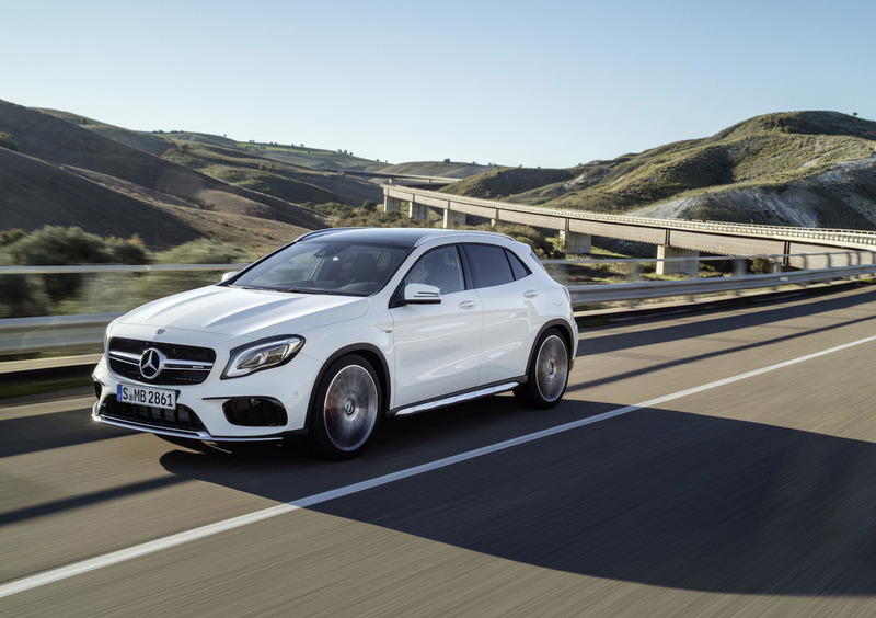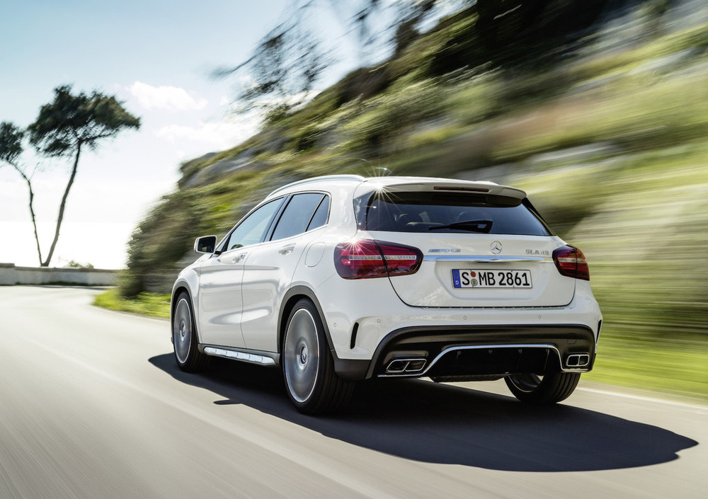 Più potente è la GLA45 AMG: questa versione vanta un propulsore 4 cilindri da 2.0 litri in grado di sviluppare fino a 375 CV di potenza e 474 Nm di coppia massima. La GLA45 AMG brucia lo scatto da 0 a 100 km/h in 4,3 secondi; la velocità massima è limitata elettronicamente a 249 km/h.