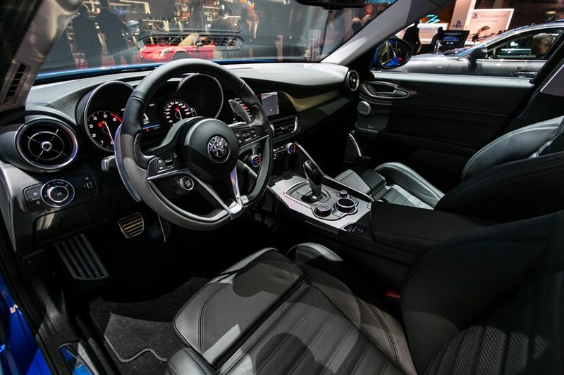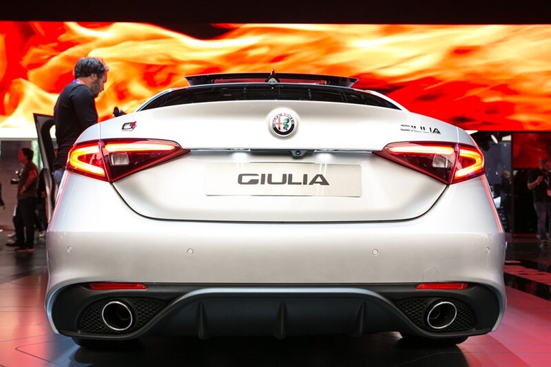 Sulla Giulia Veloce debutterà anche la trazione integrale Q4: 100% posteriore che, in caso di perdita di aderenza, trasferisce fino al 60% della coppia all'asse anteriore. Esternamente la Giulia Veloce vanta finiture esterne nero lucido, paraurti sportivi, terminale di scarico sdoppiato all'interno di un estrattore e cerchi in lega specifici.