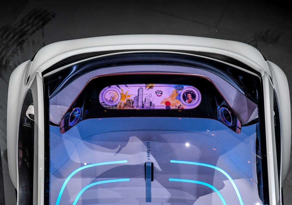 All'interno trova posto un generoso display da 24", che permette di visualizzare tutte le funzioni disponibili. La Vision EQ fortwo sfrutta una batteria agli ioni di litio da 30 kWh.